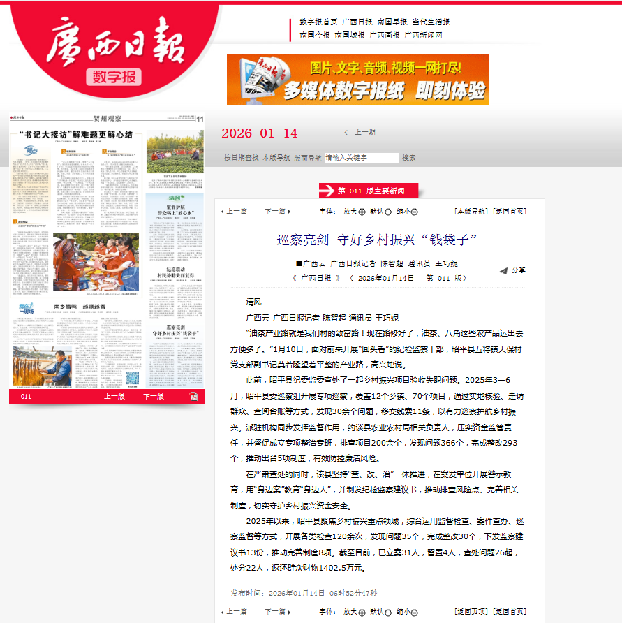 【广西日报报道昭平】巡察亮剑 守好乡村振兴“钱袋子”